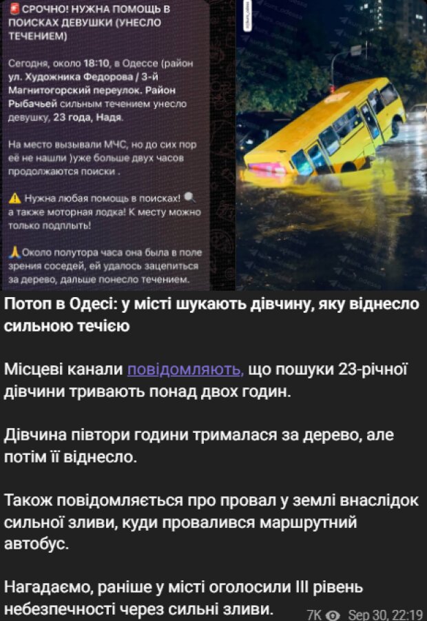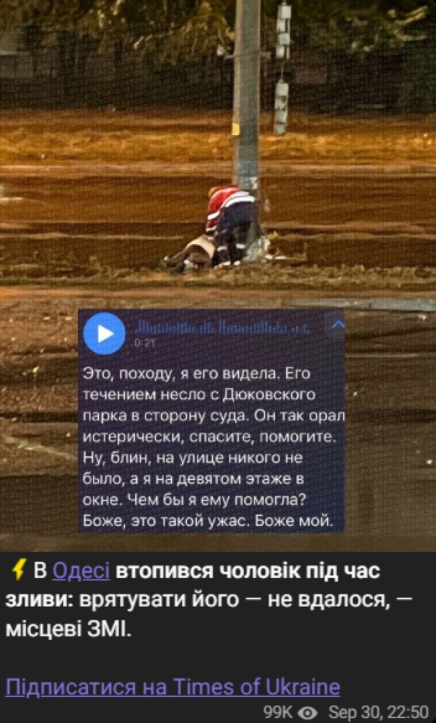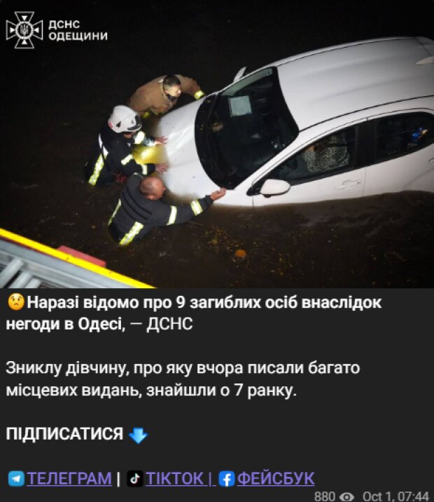 Стихийное бедствие уже унесло жизни людей. По официальным данным, в Одессе из-за ливня и подтопления погибли девять человек. Среди них мужчина, который утонул, когда спасатели не смогли его спасти.