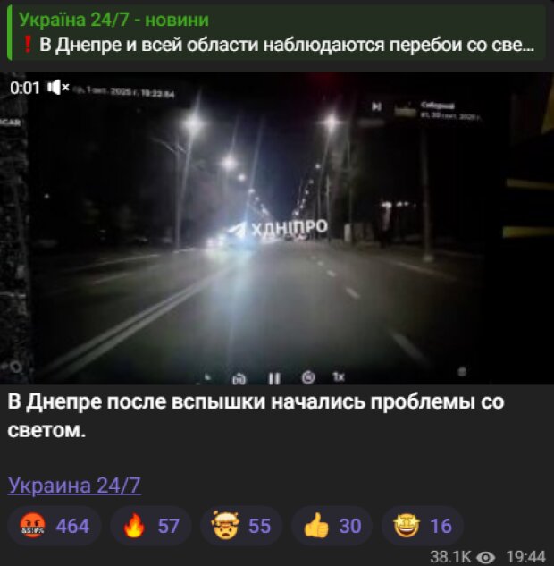 Кроме этого, сообщается, что в Днепре также появились проблемы с отключениями света.