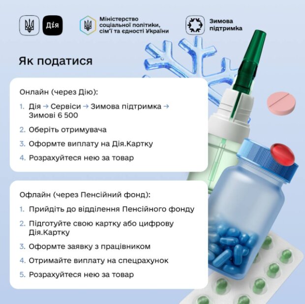 Заявки можно подать онлайн через приложение «Дія» или лично в отделении Пенсионного фонда. ПФУ рассчитывает сумму и перечисляет ее на текущий банковский счет с режимом специального пользования или на карту «Дія.Картка».